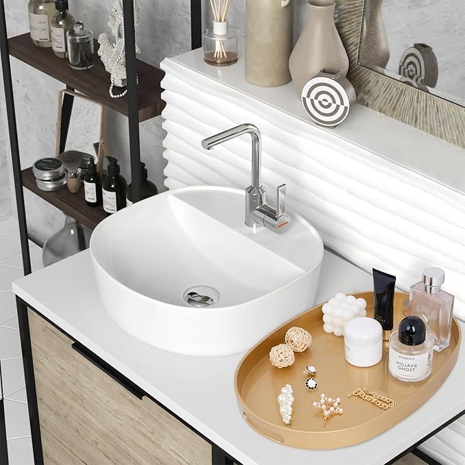 MAONAME Gold Decorative Tray, Oval Serving Tray with Handles, Plastic Trays for Coffee Table, Ottoman Trays for Living Room, Bathroom, 15.6" X 10.6" X 1.4"