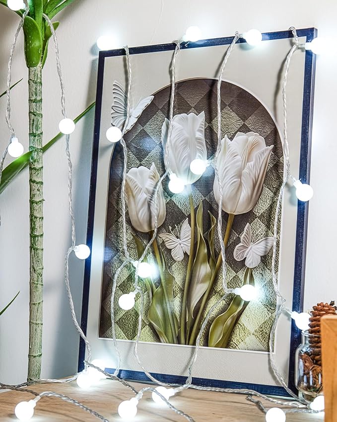 - 🎄Versatile Application – Enhance your bedroom, living room, balcony, porch, and patio decor with these enchanting fairy string lights. The inviting glow also creates a perfect ambiance for weddings, birthdays, parties, dorms, and even classrooms. Also great for festive decor on Valentine's Day, Halloween, and Christmas.