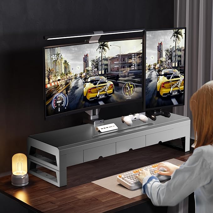 - 【3 Drawer Storage Space Organizer】The monitor stand tube adopts a three-drawer storage design, providing ample desktop storage space. It is convenient to store and organize various office supplies, USB flash drives and other small items, keeping your desk tidy and orderly.