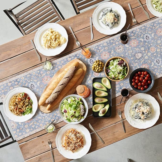 Snycler Table Runner Boho Table Runners Vintage Elegant Farmhouse Table Center Linen Decor for Home Dining Party Entrance (13x72 Inch) Blue
