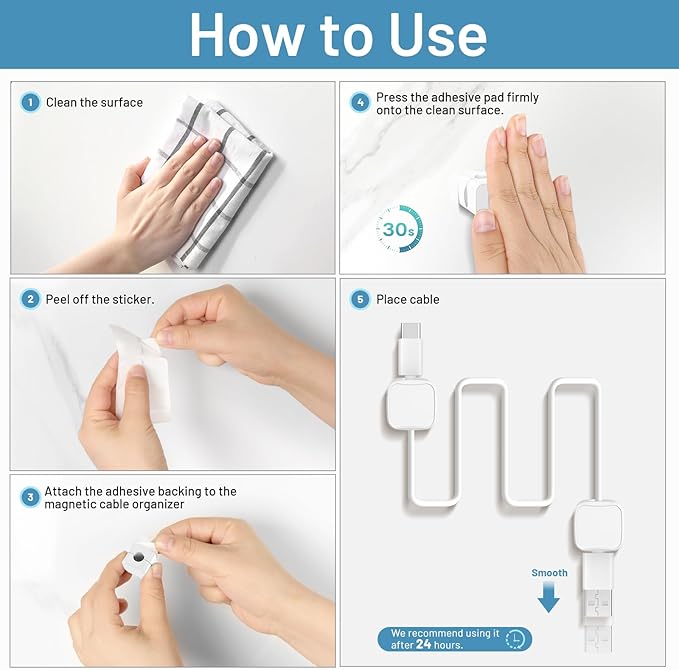 - Magnetic locking design: Easy to use. The powerful magnetic of the Znben cable management firmly fixes the wire in place and can be operated with just two fingers. 2 additional sticky pads are given to support the reuse of wire clips