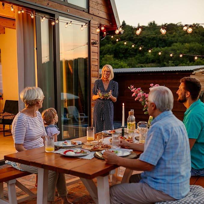 50FT LED Outdoor String Lights with 27 G40 Bulbs (2 Spare) Connectable Yard Hanging Lights for Party Tents Patio Gazebo Porch Deck Bistro Backyard Balcony Pergola Outside Decor