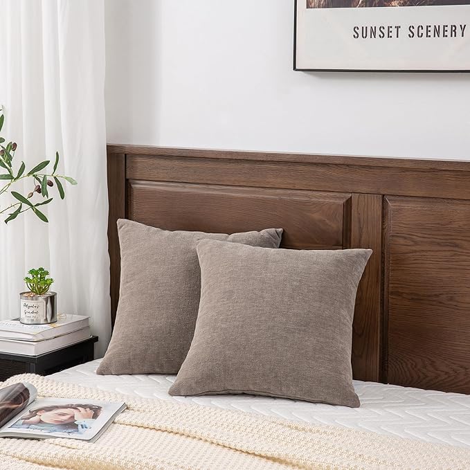 GAWAMAY Decorative Chenille Throw Pillow Covers 24x24 Inch Pack of 2, Soft Square Couch Pillow Cover for Sofa Cushion Living Room Bedroom Pillowcases Taupe Grey 60x60cm (ONLY Covers)