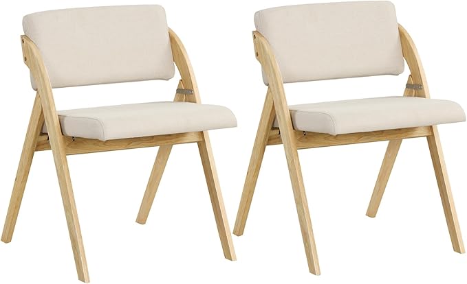GOFLAME Folding Dining Chairs Set of 2, Upholstered Kitchen Chairs with Padded Seat & Backrest, Modern Side Chairs with Rubber Wood Legs for Home Office Events, Wedding, No Assembly Needed, Natural