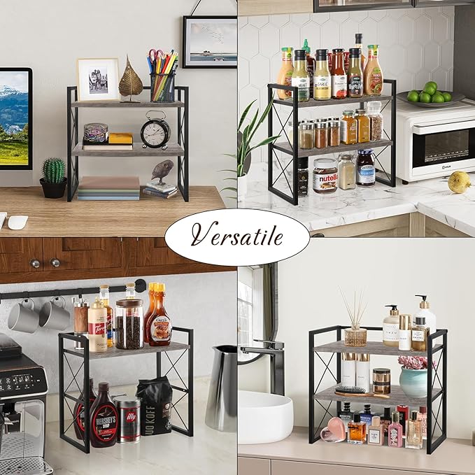 - 【Space-Saving Design】: This 2-tier desktop shelf is designed to help you maximize space on your desk or office desktop. It's perfect for storing books, office supplies, spice vases, plants, toiletries, towels, and cherished keepsakes. Say goodbye to clutter and hello to a tidy workspace in your office, kitchen, bathroom, or bedroom.