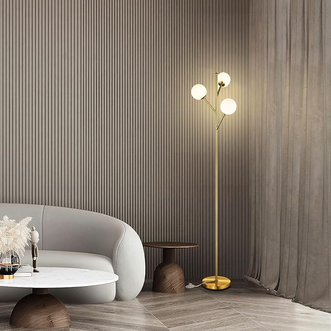 - Unique Style& Modern Design:Three opal white glassshades and the unique light pole combined makes this mid century modern tree Gold floor lamp look modern,clean and simple.Minimalist floor lamp design saves space and perfectly matches any home style. Antique Brass Lighting