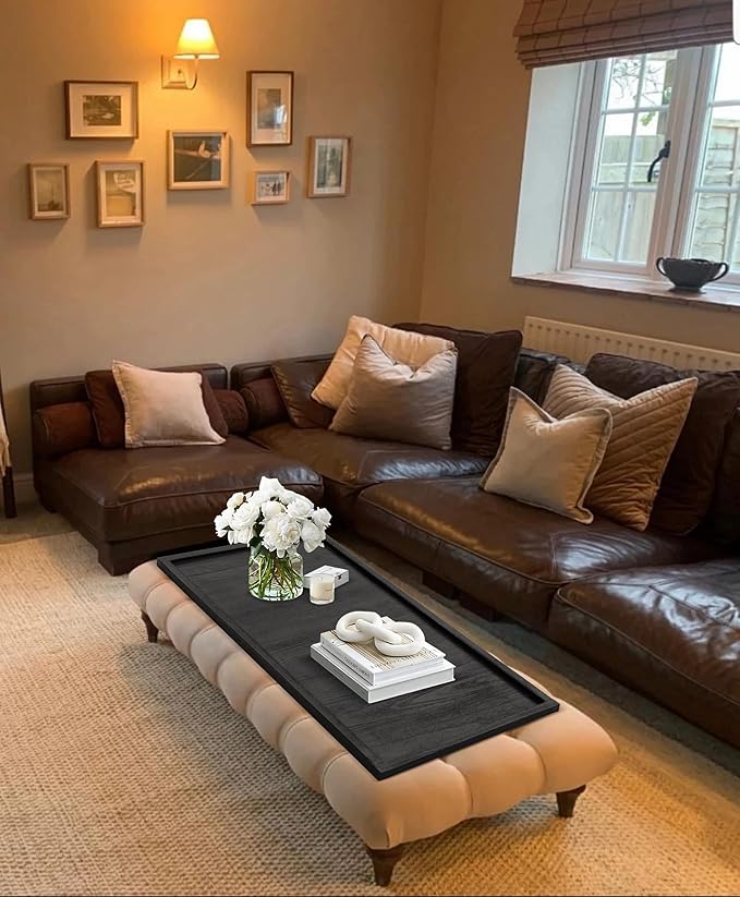 - π· KING SIZE OTTOMAN TRAY - the dimension is 40x20x1.1 inches. Perfect size for as serving tray, decorative tray, ottoman tray and coffee table alternative to hold drinks, snacks, books, or decor items; serve as a convenient serving area, use it to hold appetizers, drinks, or even a small buffet setup.