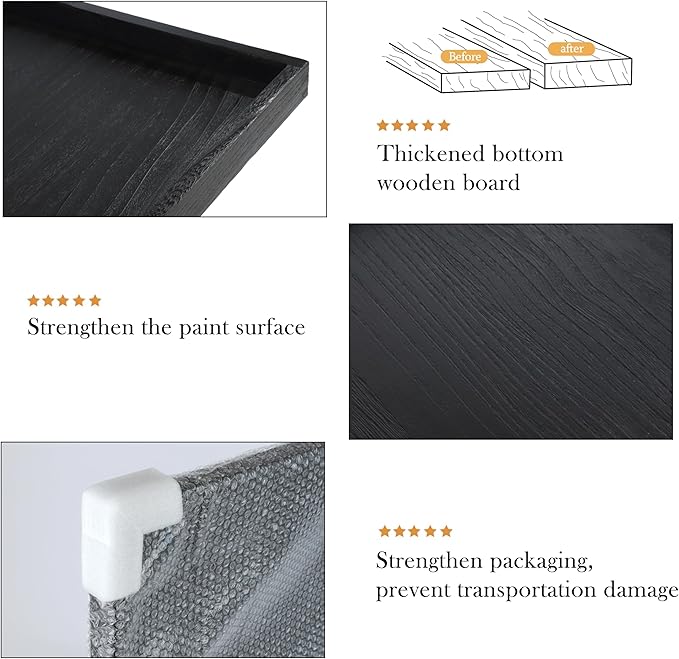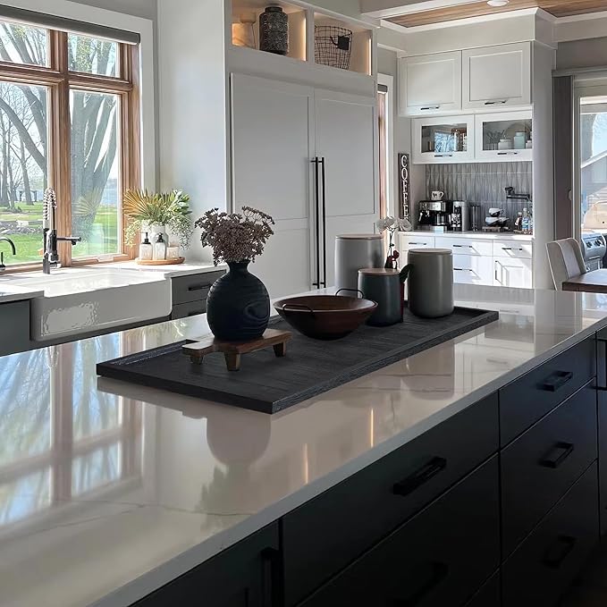 40"x20" Extra Large Long Rectangle Ottoman Table Tray - Black Rustic Wooden Serving Tray for Farmhouse Decorative Oversized Coffee Table Trays Living Room Kitchen Counter Breakfast