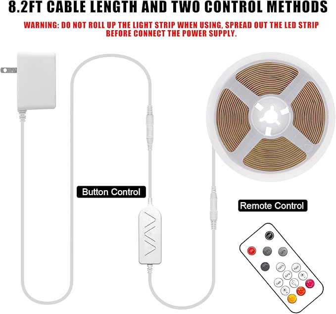 - Easy to Install: The COB light strip is flexible and cuttable with strong adhesive tape, 8.2ft wire cord from power supply to light strip makes you installation more easy.