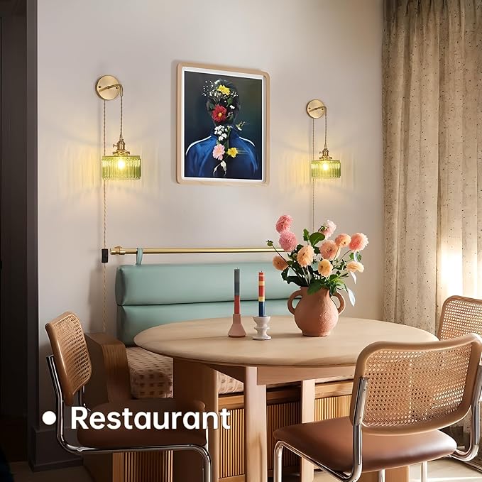 - ⭐【Adjustable Cord】 The length of the cord can be adjusted according to needs to meet the lighting needs of different spaces and individuals, enhancing the flexibility and adaptability. The knob switch on the sconce is cleverly designed to retain the characteristics of the retro style while providing the convenience of modern life. The wires are wrapped in a rubber coating and covered with fabric to ensure safety and reliability.