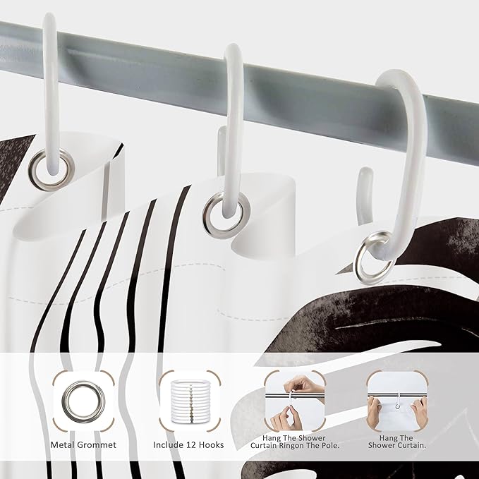 Glawry Boho Black White Shower Curtain Mid Century Abstract Tropical Palm Leaf Modern Minimalist Plant Botanical Bathroom Geometric 60Wx72L Inches Bath Accessories Art Home Decor Fabric 12 Pack Hooks