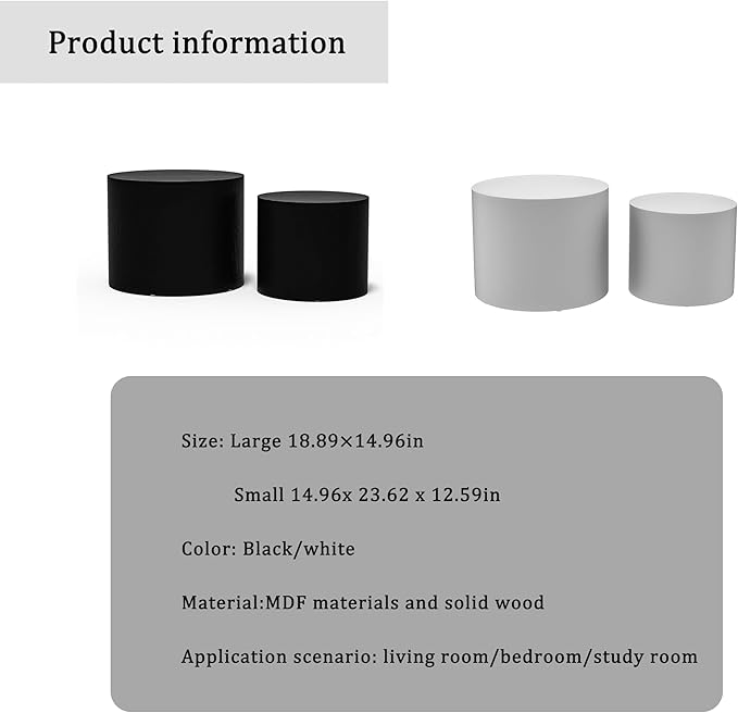 - 【2-Piece Nesting Coffee Table Set】: This set includes two round tables in different sizes: a larger coffee table (Ø18.9" x H14.9") and a smaller side table (Ø14.9" x H12.5"). Nest them together to save space, or use separately for flexible functionality in any room.