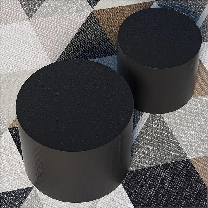 2-Piece Round Nesting Coffee Table, Circle End Table Wood Accent Table, Minimalist Side Table Set for Small Spaces, Living Room, Apartment(Black)