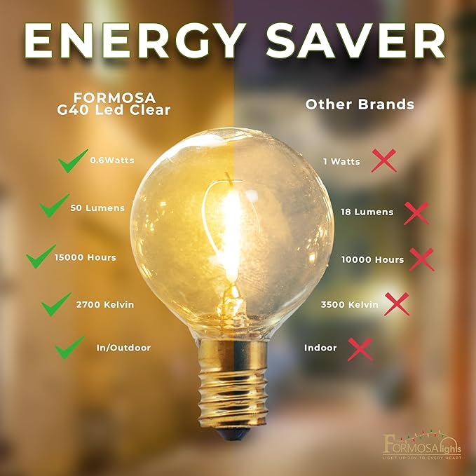 - Outdoor Ambiance: Enhance your patio with G40 Clear LED outdoor string lights; soft, warm glow creates a cozy atmosphere for any occasion. Ideal for intimate dinners, garden parties, and outdoor gatherings.