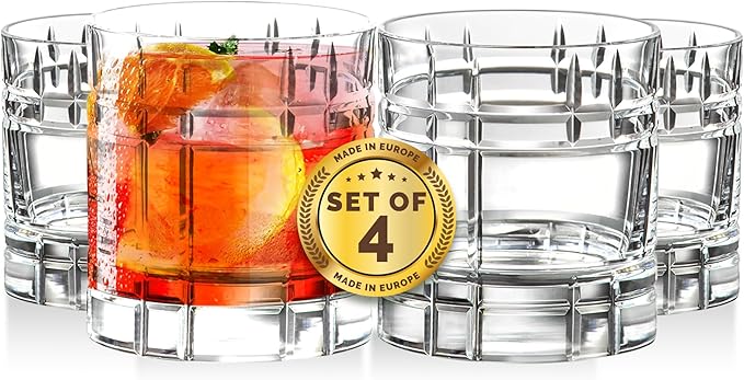 Barski Whiskey Glasses - Double Old Fashioned Rocks Glass - Set of 4 Lowball Tumbler - DOF Crystal Glass Tumblers - For Scotch - Bourbon - Water - Beverage - Drinking Glasses - 11 oz - Made in Europe