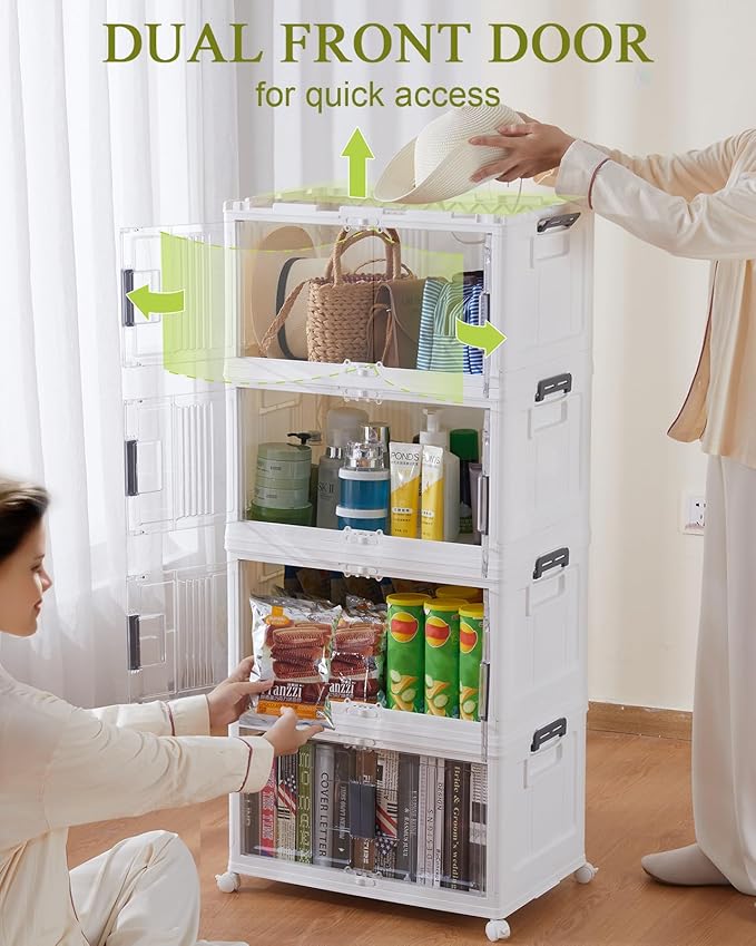 OlarHike 48QT Lockable Storage Bins with Lids - Folding Storage box with Doors and Wheels, Collapsible Plastic Storage Bins for Closets, Stackable Storage Organizer, Storage Containers, 4 Pack Cubes