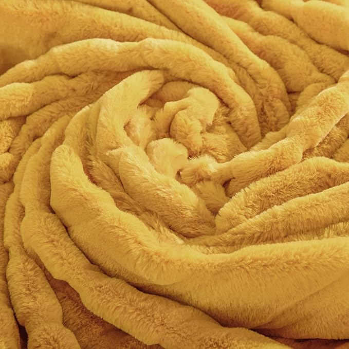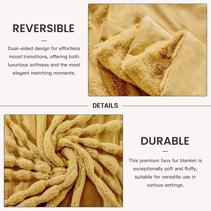 NEXHOME PRO Faux Fur Throw Blanket, Cozy Fluffy Soft Blanket or Couch Sofa Bed Living Room Decorative, Reversible Puffy Thick Warm Blanket for Winter 50"X60" Orange