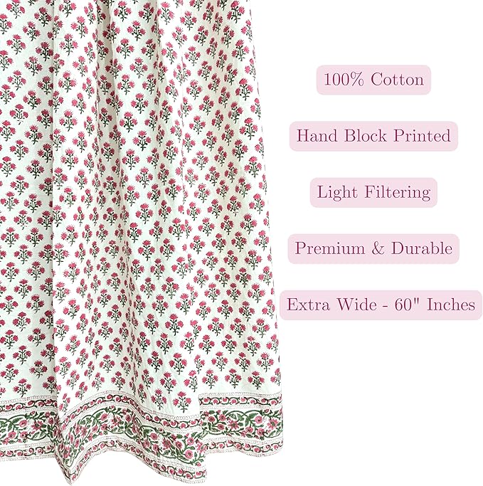 ATOSII 100% Cotton Single Panel Floral Block Print Curtain, Easy Hanging with Rod Pocket & Loop, Living Room, Dining Room, Bedroom Light Filtering Boho Curtains, Set of 1, 60"W X 96"L, Gulbahar Pink