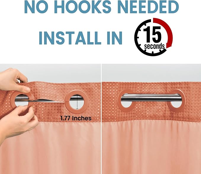 - 【Thick "Cotton" Type Fabric Shower Curtain】Made from expertly chosen and tested Heavyweight Polyester Fabric, touches like a cotton feel. 230GSM (Gram Per Square Meter), about 0.8 pounds heavier than normal 90GSM fabric shower curtains; Honeycomb waffle weave pattern adds elegance to your bathroom