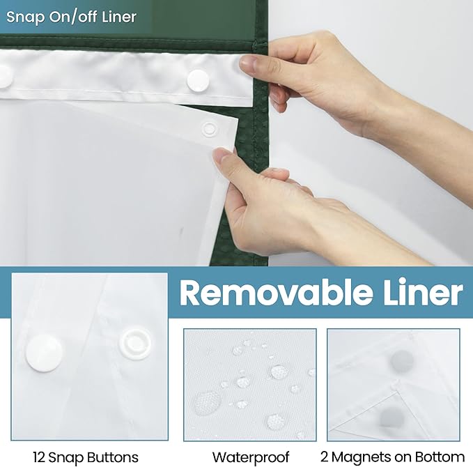 - 【Effortless Care and Cleaning】Made from premium fabric, the shower curtain and liner can be machine or hand-washed for easy maintenance. Avoid bleach and tumble dry on low heat. Iron on low if needed. The long-lasting fabric ensures it remains a practical addition to your bathroom