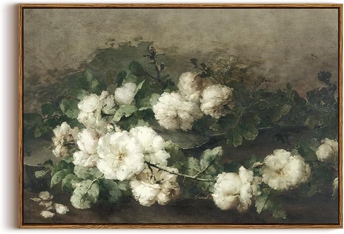 • Floral Oil Painting Cottagecore Home Decor:Perfect for a variety of settings, this framed floral canvas wall art enhances the ambiance of your bedroom, bathroom, or living room. The vintage white floral design and rustic farmhouse aesthetic create a serene and welcoming atmosphere, effortlessly complementing both contemporary and traditional decor styles.