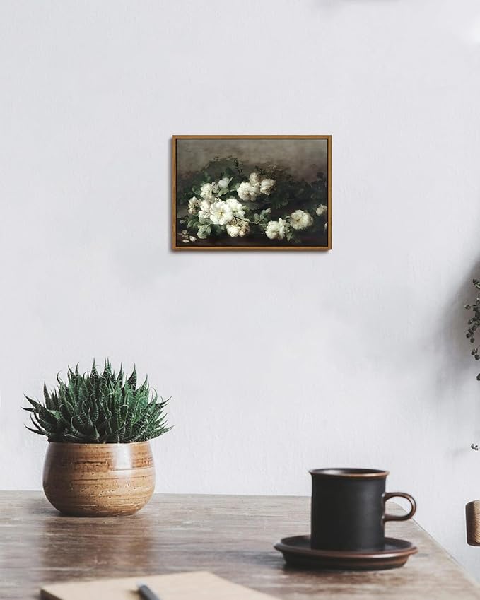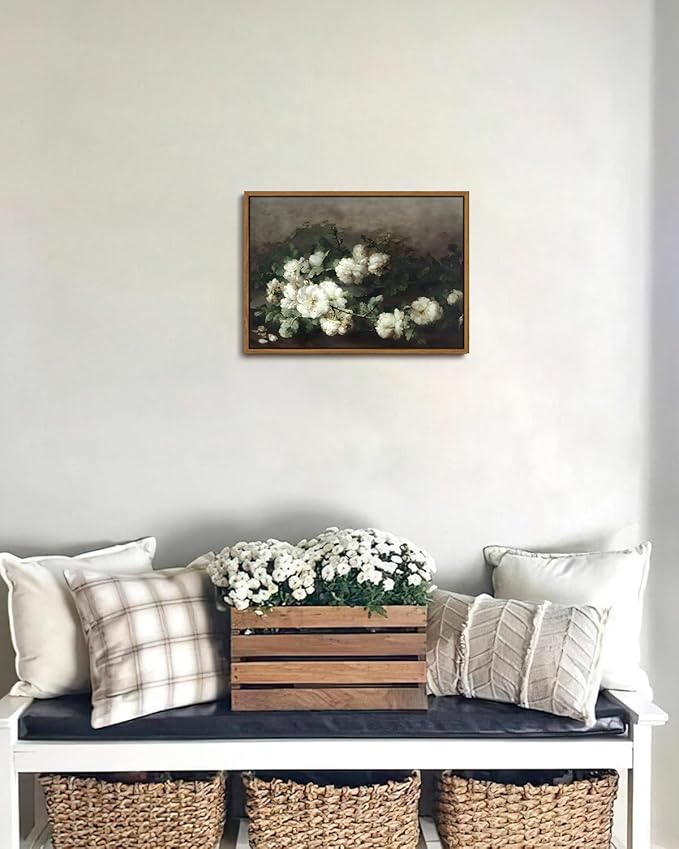 • Floral Oil Painting Cottagecore Home Decor:Perfect for a variety of settings, this framed floral canvas wall art enhances the ambiance of your bedroom, bathroom, or living room. The vintage white floral design and rustic farmhouse aesthetic create a serene and welcoming atmosphere, effortlessly complementing both contemporary and traditional decor styles.