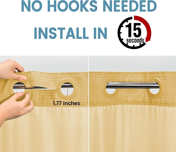 - 【Hotel & SPA】This shower curtain designed with "Split Rings" that let you hang them easily. "Three-proof" fabric, lotus leaf water-repellent, oil-repellent, and stain-repellent. Heavy duty with weighted hem, keep it from billowing, Sheer Viewing Window: A white mesh upper panel lets light in and allows air to circulate, see-through while maintaining privacy, creating a spa shower experience