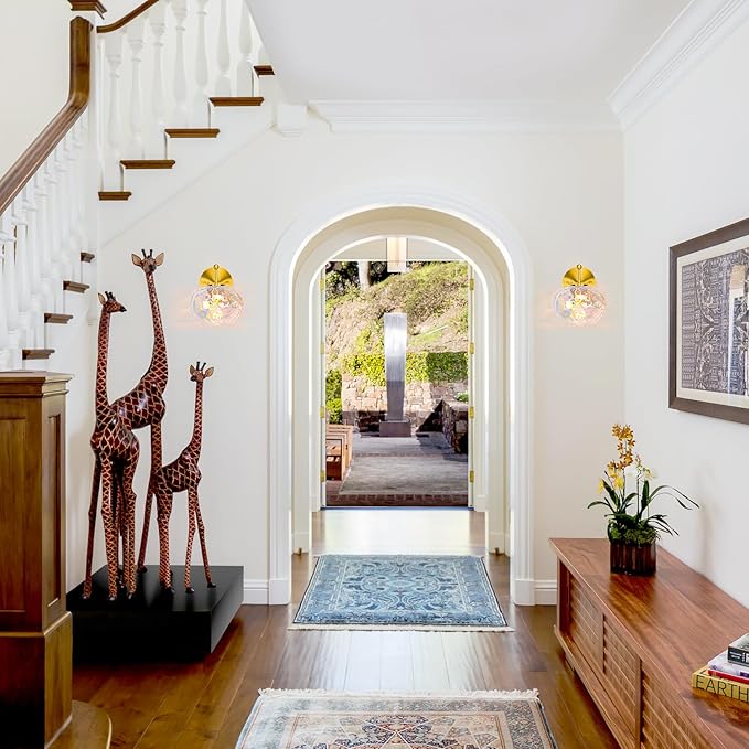 - 【Ideal Size for Multiple Spaces】 With dimensions of 7" Dia and 8"H, these vintage glass wall lamps are perfect as bedroom wall lights, living room accents, vanity lights for bathrooms or mirrors, and can be used in hallways, dressing tables, cabinets, garages, doorways, and art displays.