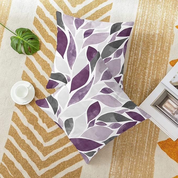 CaliTime Throw Pillow Cases Pack of 2 Cozy Fleece Falling Dahlia Floral Flowers Petals Decorative Cushion Covers for Couch Bed Sofa Farmhouse Decoration 22 X 22 Inches Deep Purple Grey
