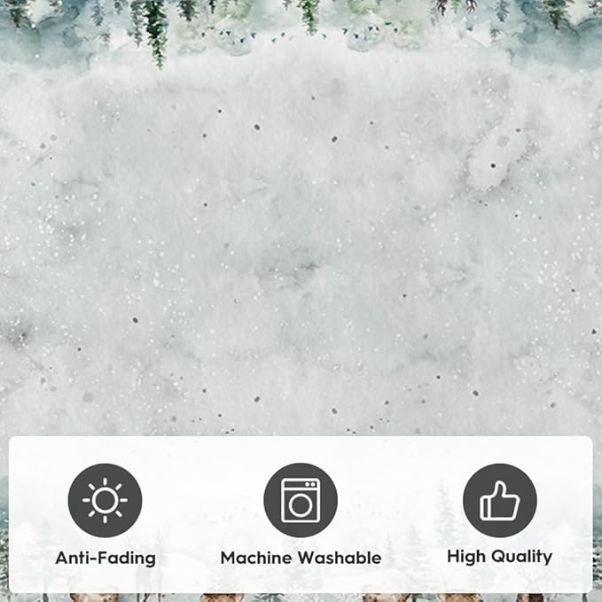 Artoid Mode Deer Snowflakes Pine Tree Christmas Door Mat, Xmas Winter Home Decor Low-Profile Non-Slip Washable Area Rug for Kitchen Entryway Bedroom Bathroom Laundry Room Indoor 2x3 Feet