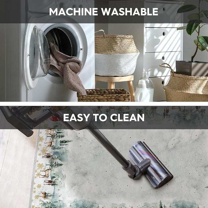 - AREA RUGS WASHABLE:The washing machine and vacuum cleaner is friendly to these area rug. Rugs are quick and easy to clean and maintain which is durable, just regular vacuuming and gently blotting out minor stains with a mild detergent or carpet cleaner. A clean rug for living room can be obtained without taking a long time.