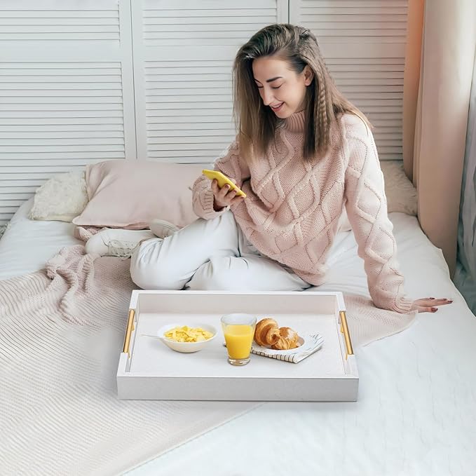 White Decorative Tray for Coffee Table, Modern Large Ottoman Tray for Living Room,Drink Coffee Serving Tray
