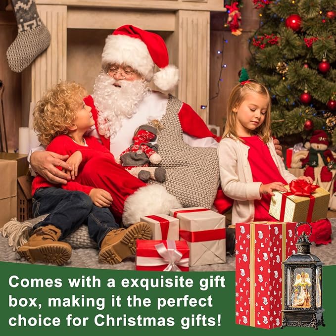 - Christmas Snow Globes: This particular snowball contains a nativity scene , Inside glitters and water swirling continuously when you turn on the lantern. Christmas Eve songs will play on a loop