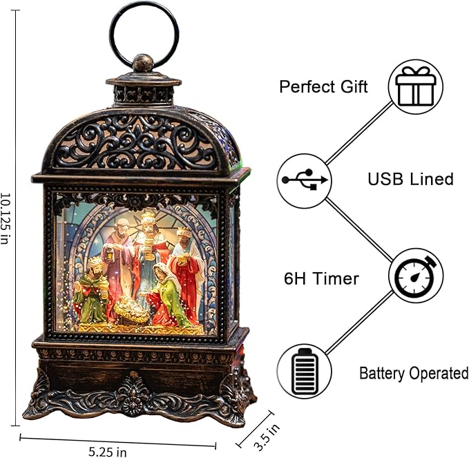- Well constructed: The frame of the snow globe lantern is made of Acrylic and ABS material, constructed with high quality plastic and promising long-time durability. The details and lights are very beautiful.