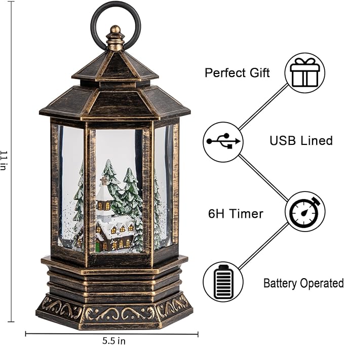 - Well Constructed: The frame of the snow globe lantern is made of Acrylic and ABS material, constructed with high quality plastic and promising long-time durability. The details and lights are very beautiful.