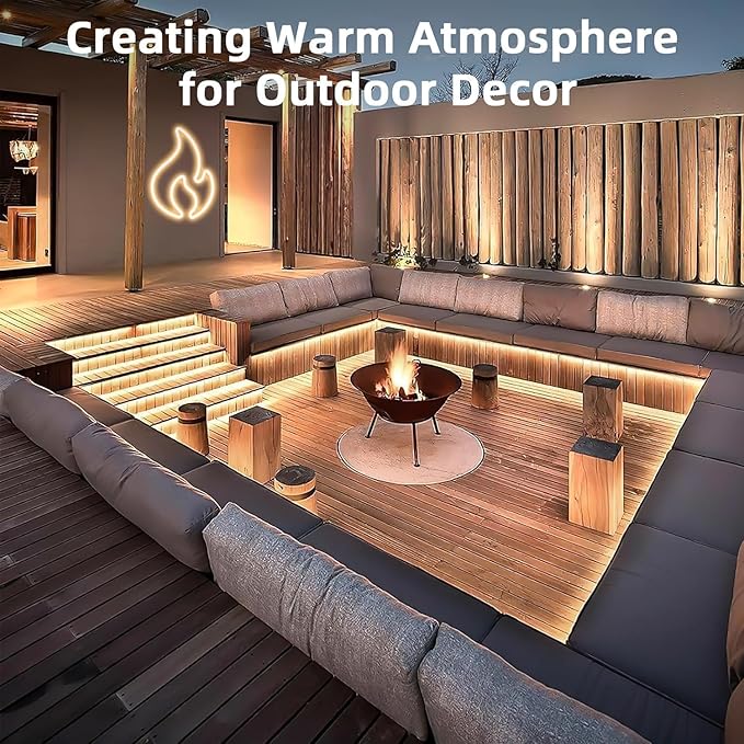 - 【LED Strip Lights waterproof IP65】- Made of the IP65 Technology that Makes it Waterproof, Available to Use in the Swimming pool/in Heavy Rain Day. Durable&Weather-resistant&Heatproof Silicone Construction. Safer Silicone Material, Won’t be Self-ignited even Burned with fire; LED won’t die out