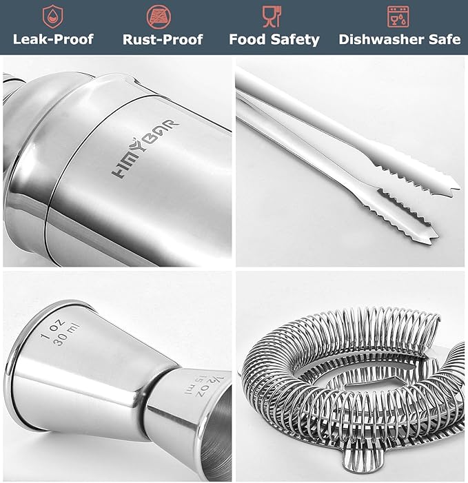 - Included Components : 24OZ(700ml) Cobbler Shaker, Double Side Jigger 15/30ml, Mixing Spoon, Hawthorne Strainer, Liquid Pourer, Muddler, Corkscrew, Ice Tong, Stainless Straw, Cocktail Pick, Brush for Cleaning Straw/ Pourer, Kit's Deco/ Glass Markers 39-recipe Cocktail Cards, Bamboo Stand. 24OZ(700ml) Cobbler Shaker, Double Side Jigger 15/30ml, Mixing Spoon, Hawthorne Strainer, Liquid Pourer, Muddler, Corkscrew, Ice Tong, Stainless Straw, Cocktail Pick, Brush… See more