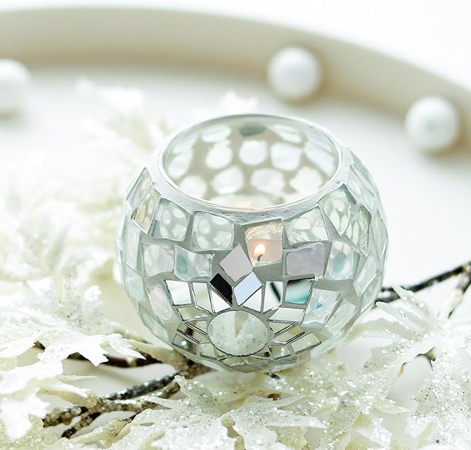 - Handmade Winter-Inspired Craftsmanship: Handcrafted with mosaic glass, these tealight candle holders showcase intricate winter designs that capture the essence of Christmas decor. Their shimmering surface adds a magical sparkle to your holiday decorations, transforming any space into a cozy winter wonderland
