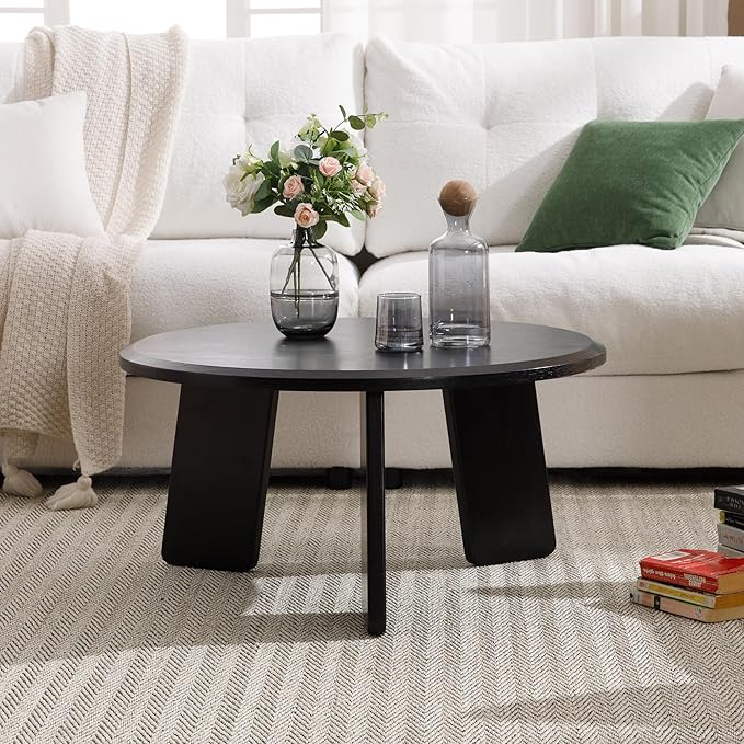 Mid Century Modern Coffee Table Wood Living Room Table Cute Round Coffee Table Center Table Side Table for Living Room Office Reception Room, Black