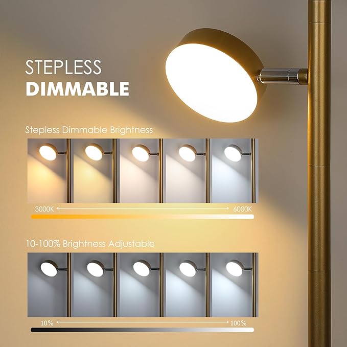- 4 Color Temperature Dimmable Floor Lamp: The tall standing lamps have 4 color temperatures to choose from 3000k-4000K-5000K-6000K (warm white-neutral white-daylight white-cool white). The warm light gives you soft and warm feeling and can be used as a night light, ambient light, and the bright cool white light can be used for daily lighting or as a reading light, office lamp