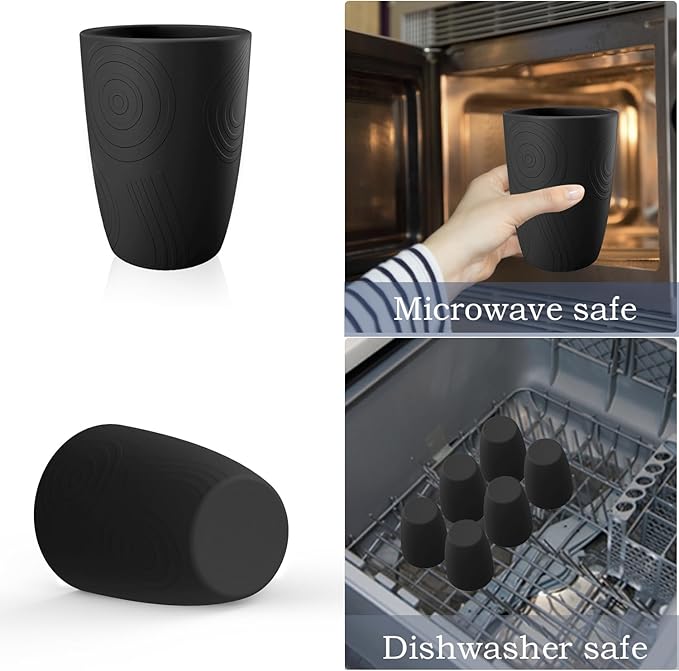 - ANTI-SLIP AND LIGHTWEIGHT:Our cups feature a unique anti-slip textured design. It not only prevents accidental drops but also adds a decorative touch to your space. The classic black color can easily match all of your tableware. They are lightweight and more friendly to your hand joints.