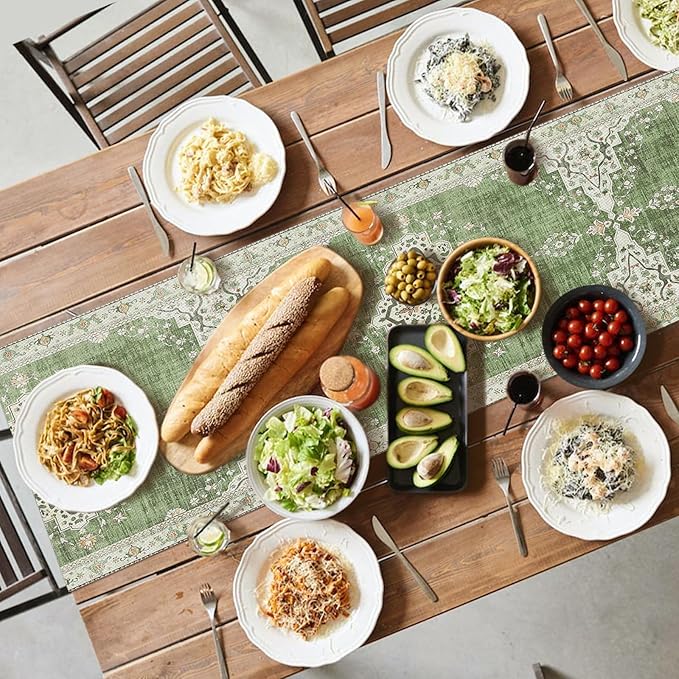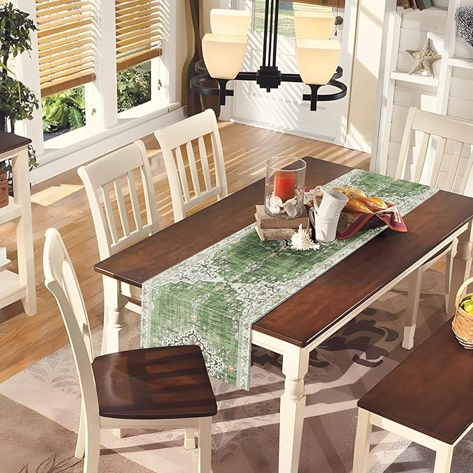 Snycler Table Runner Boho Table Runners Vintage Elegant Farmhouse Table Center Linen Decor for Home Dining Party Entrance (13x72 Inch) Light Green