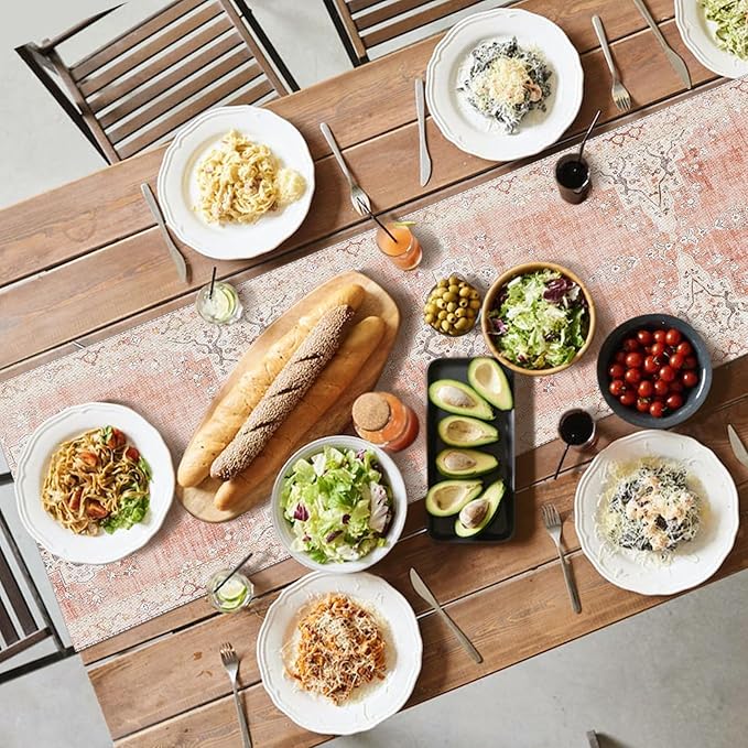Snycler Table Runner Boho Table Runners Vintage Elegant Farmhouse Table Center Linen Decor for Home Dining Party Entrance (13x72 Inch) Light Pink