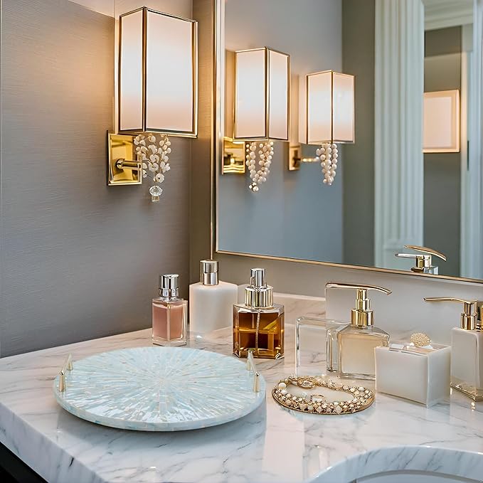 - VERSATILE DESIGN: Great for use as a jewelry, cosmetics, candle display tray, vanity tray, trinket tray, or catchall tray on dressers, bathroom vanities, tables, and counters. Serving tray for foods, drinks. Ideal for use in the kitchen, dining room, living room, bedroom, bathroom, office, bar, or as a decorative coffee table tray, display and table centerpiece