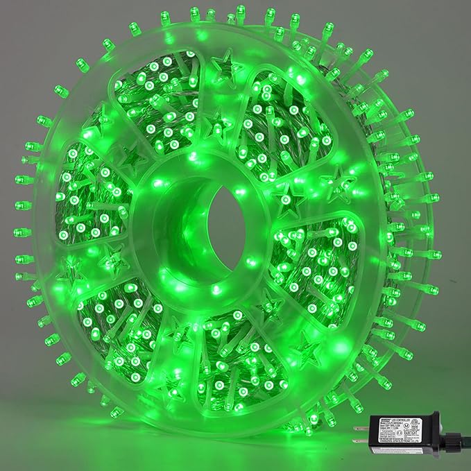 YEGUO 165ft 500 LED Halloween Lights Outdoor Waterproof, Green String Lights Indoor Plug in, 8 Modes Clear Wire for Halloween Holiday Home Tree Garden Patio Decor