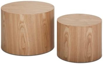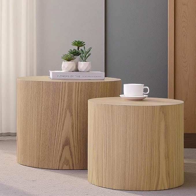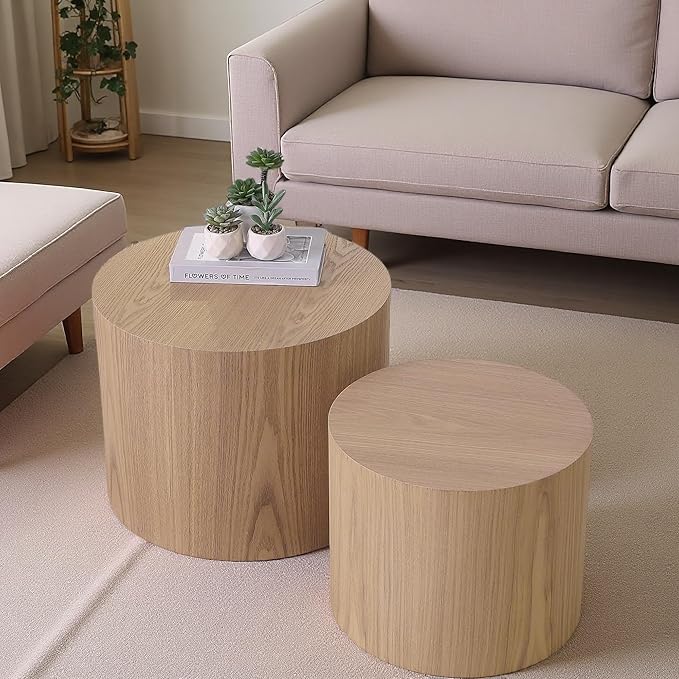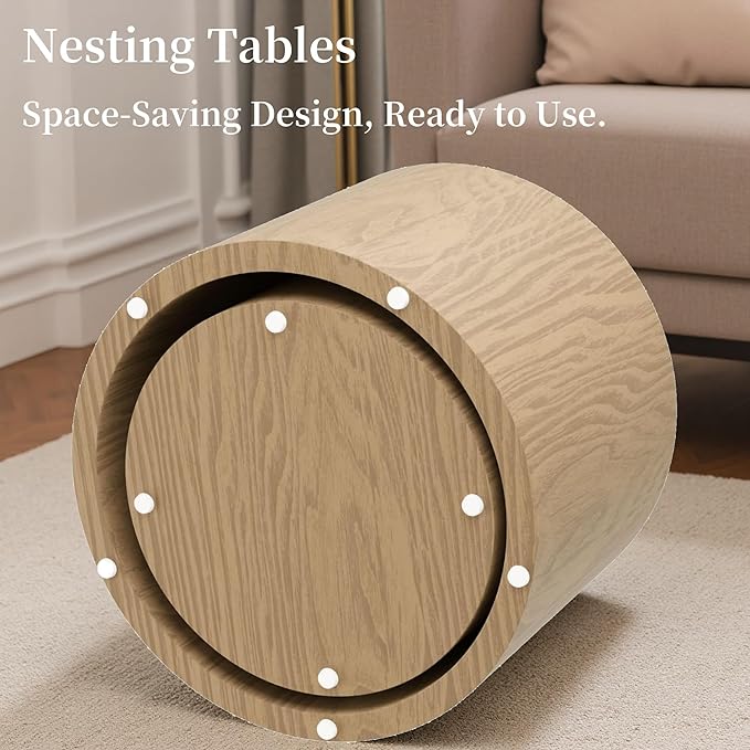 2-Piece Round Nesting Coffee Table, Circle End Table Wood Accent Table, Minimalist Side Table Set for Small Spaces, Living Room, Apartment(Oak)