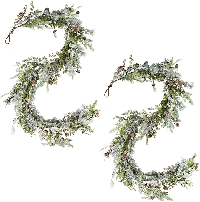 - Package Includes: 2 pcs 6FT Mixed Snowy Norway Spruce & Pine Branch with Shimmy Berries Mantle Christmas Garland