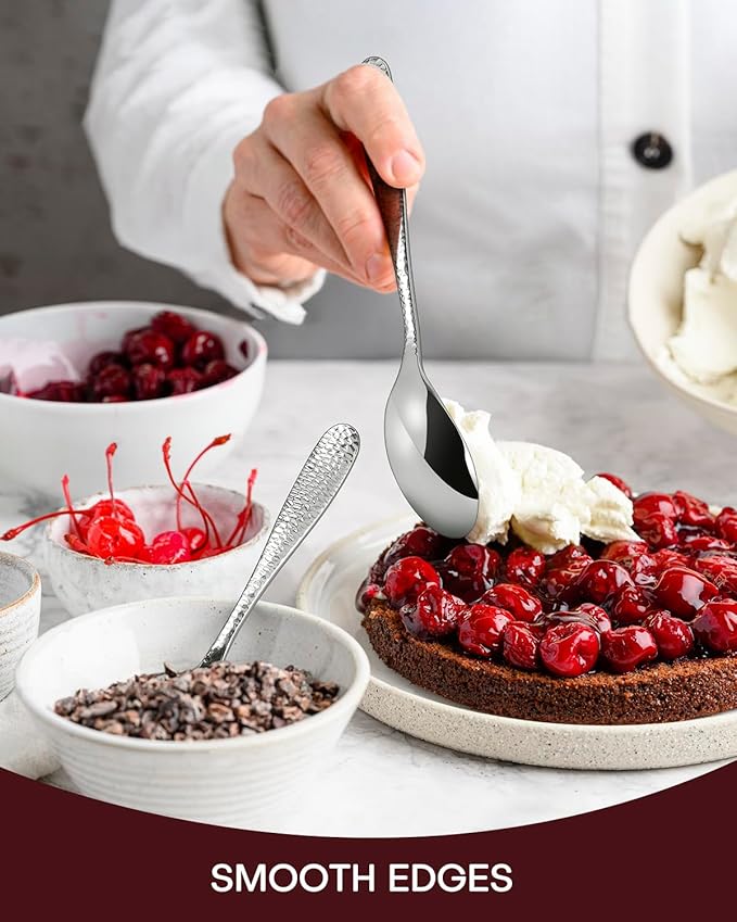 - High-quality Stainless Steel - The cutlery set is made of high-quality stainless steel, with high grade forging technology. Double-sided hammered handle not only beautiful, but also add a calm texture. The appropriate weight and heavy-duty structure ensure that the cutlery can withstand daily use and is not easy to bend or break. EUIRIO cutlery has both texture and weight. Every time you hold it, it is a recognition of its quality.