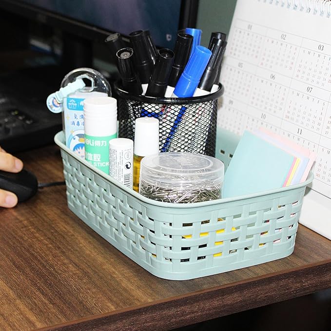 - 【3 Pack Plastic Organizer Basket】This set includes 3 green plastic organizer baskets with woven pattern. Each basket measures7.87*5.71*2.56 inches.The baskets feature a small hole design to enhance ventilation and improve organization for better storage of your items