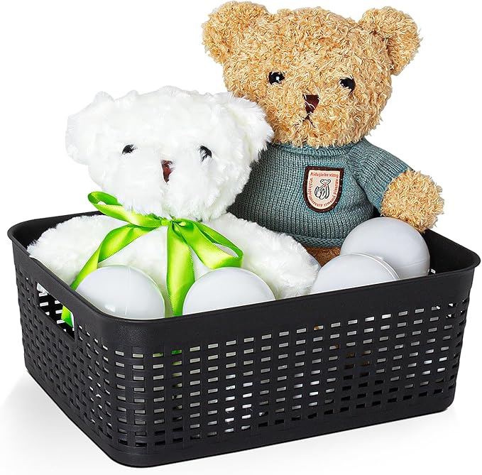 - 【3 Pack Plastic Organizer Basket】This set includes 3 black plastic organizer baskets with woven pattern. Each basket measures 12.2*9.65*4.53 inches. The baskets feature a small hole design to enhance ventilation and improve organization for better storage of your items